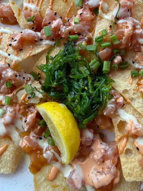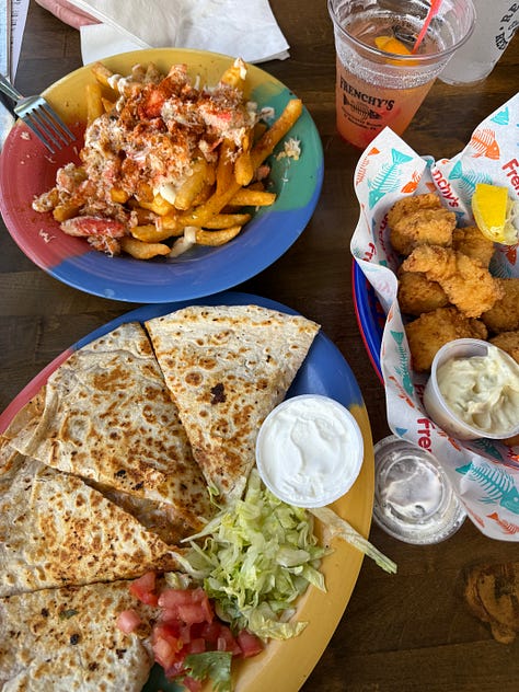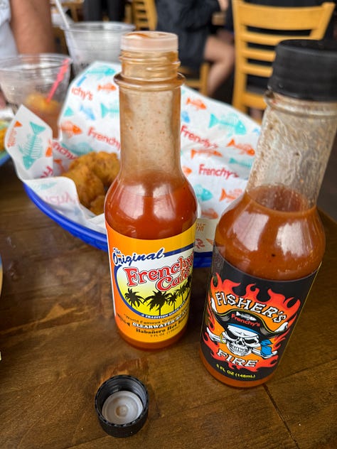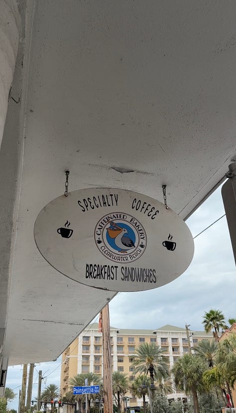 While eating out, I try to anchor meals so I don’t swing between starving and stuffed. I’ve been opting for fish, especially since grouper is the local speciality. So far, I’ve had ahi tuna nachos (incredible), grouper nuggets, old-bay crab fries and an egg sandwich from Caffeinated Bakery.