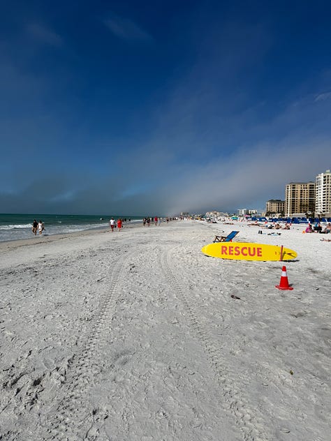 Reporting live from Clearwater Beach, Florida. It’s sunny and 75 degrees. I’m sitting on the dock of our Air BnB. My mom is next to me reading. I smell like salt water and sunscreen. All I can hear is the hum of people vacationing.