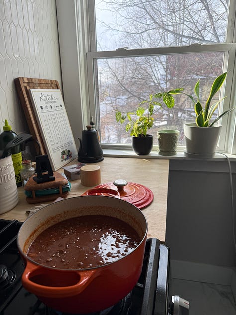 The other bulk prep recipe that deserves a shoutout is Ali Slagle’s NYT Chili Mac. It’s quick, hearty, warm, and comforting. Aka exactly what I needed to match the mood of this week and keep myself well-fed without overthinking it.