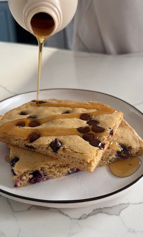 Sheet Pan Chocolate Chip & Blueberry Protein Pancakes